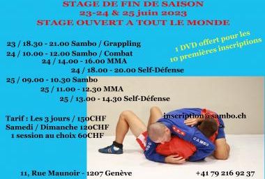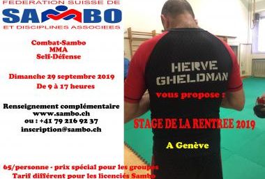 Ouvert à toutes et tous stage de la rentrée 2019... Inscription en ligne dès maintenant : Pour les licenciés Sambo : https://www.mypos.eu/vmp/btn/BKUMCXCEIN790 Pour toutes les autres : https://www.mypos.eu/vmp/btn/BXJMXZS2TLJ40 Prix à revoir pour les clubs Pour tout renseignement : stage@sambo.ch ou +41 79 216 92 37 Bon été à Toutes et Tous !!!